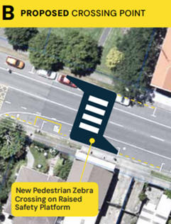 A new raised zebra crossing will be installed to slow traffic and give pedestrians priority in an area with high foot traffic.