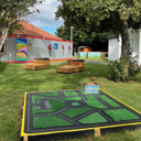 A timeline describing the history of the now-demolished community centre set in a colourful container is the centrepiece of the new space. Other welcoming attractions include a ping pong table (BYO bats and balls or borrow them from the library), a sensory footpath to tickle your toes, weta motels and a racetrack for children to push toys around.