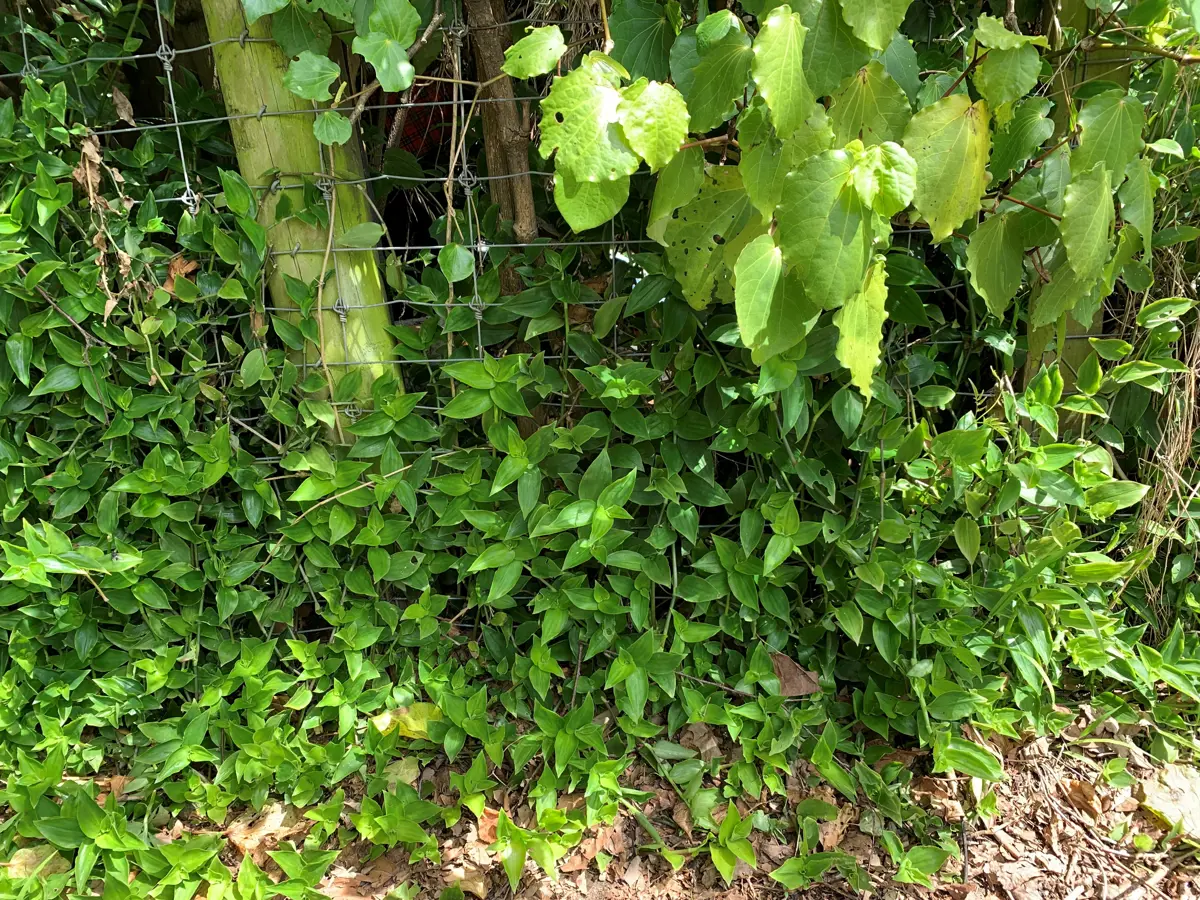Vines climbing up trees can be cut a few feet from the ground and pasted with systemic herbicide to kill what’s left. Spraying with herbicide is best completed in summer.