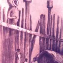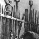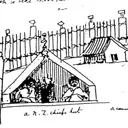 Waikanae Pā and Kāpiti. Pencil sketch by JA Gilfillan from “Old Whanganui” by TW Downes. By permission of Miss Gilfillan.