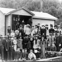 Opening of the Reikorangi Creamery in 1902. Byron Brown, chairman of the Ōtaki–Manakau Dairy Company performed the ceremony. A banquet was held afterwards at the Reikorangi schoolrooms. Hp1862, Monk Collection, Kāpiti Coast District Libraries