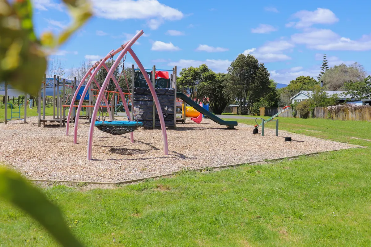 Campbell Park has a colourful playground with a rainbow slide, swings, seesaw, and more – plenty of fun for all the Tamariki! It’s perfect for whānau picnics, with spacious grassy areas and shady pōhutukawa trees, and best of all it’s just a short walk from The Parade.