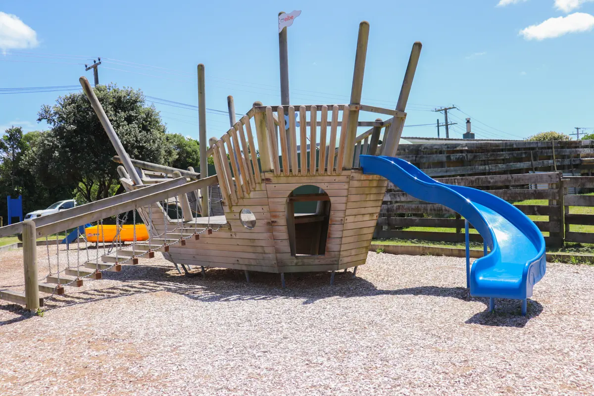 Equipped with a mini boat and slide for younger children and a large pirate ship for older kids.