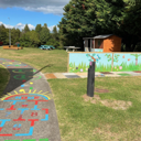 A timeline describing the history of the now-demolished community centre set in a colourful container is the centrepiece of the new space. Other welcoming attractions include a ping pong table (BYO bats and balls or borrow them from the library), a sensory footpath to tickle your toes, weta motels and a racetrack for children to push toys around.