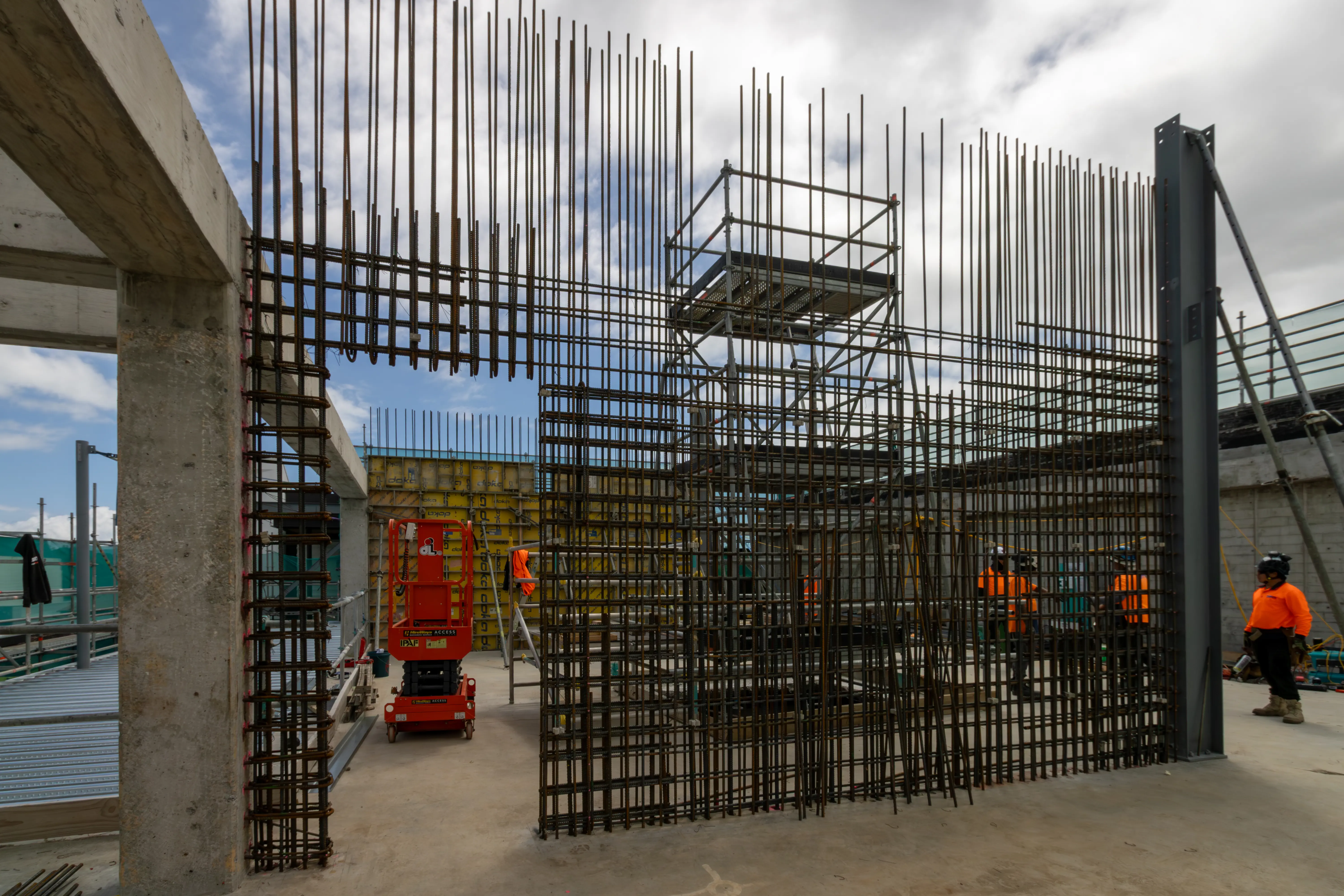 Construction is in full swing, with the first phase of building new shear walls and installing structural steel underway. These provide extra support for the building’s three levels as well as delivering seismic strength. Concrete floors are being poured and works to connect the building to water, stormwater, and wastewater networks are being completed.
