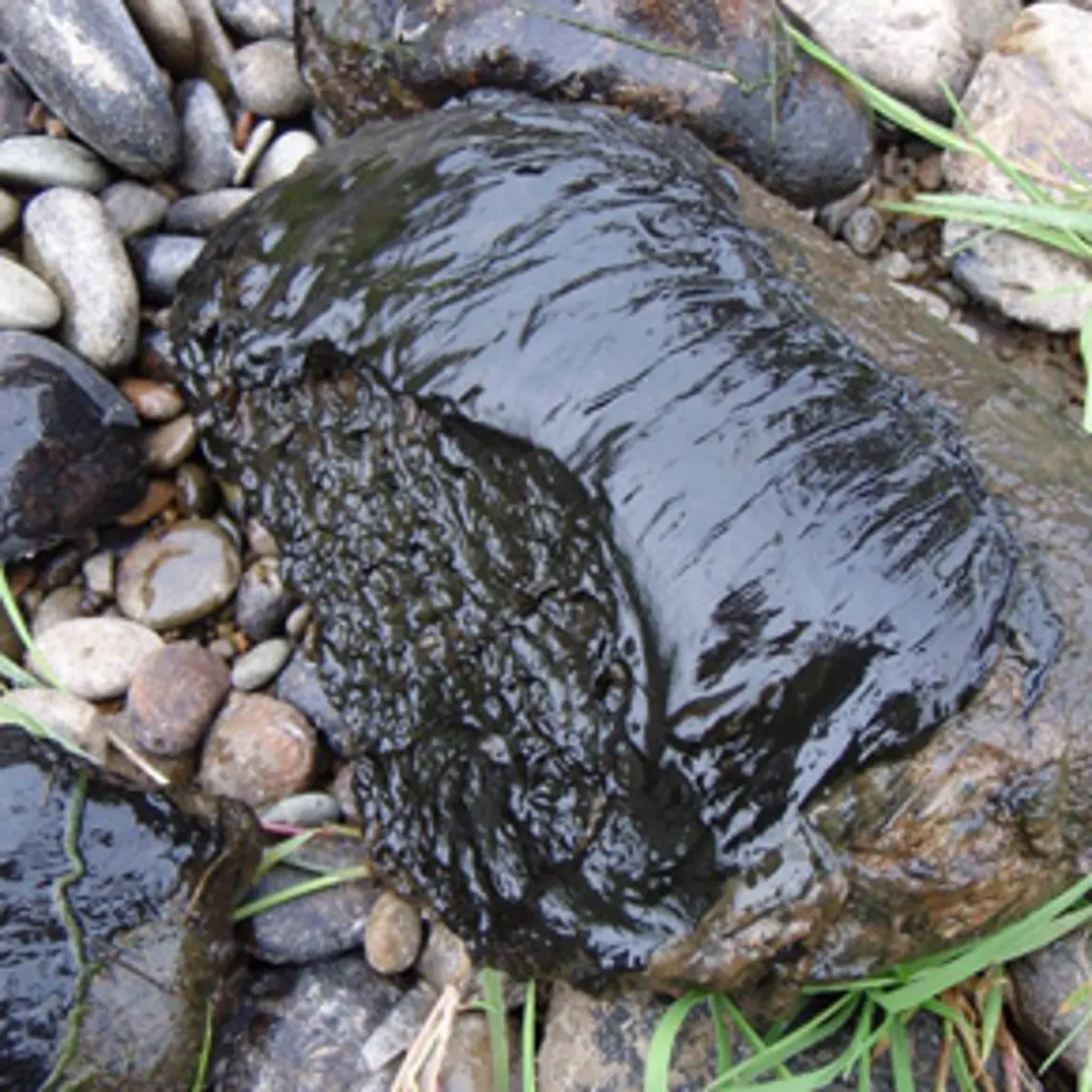 - dried out mats on the riverbank; these turn a light brown or white colour and may also produce a strong musty odour.