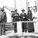 The sale of the farm on 9July 1936. The man on the left is Mr Taylor the Land agent from Ōtaki, then L–R: one of the few photos of Arthur MacKay, Mr and Mrs Gooding and their son Noel. Noel’s wife Elizabeth took the photo. Arthur MacKay died shortly after