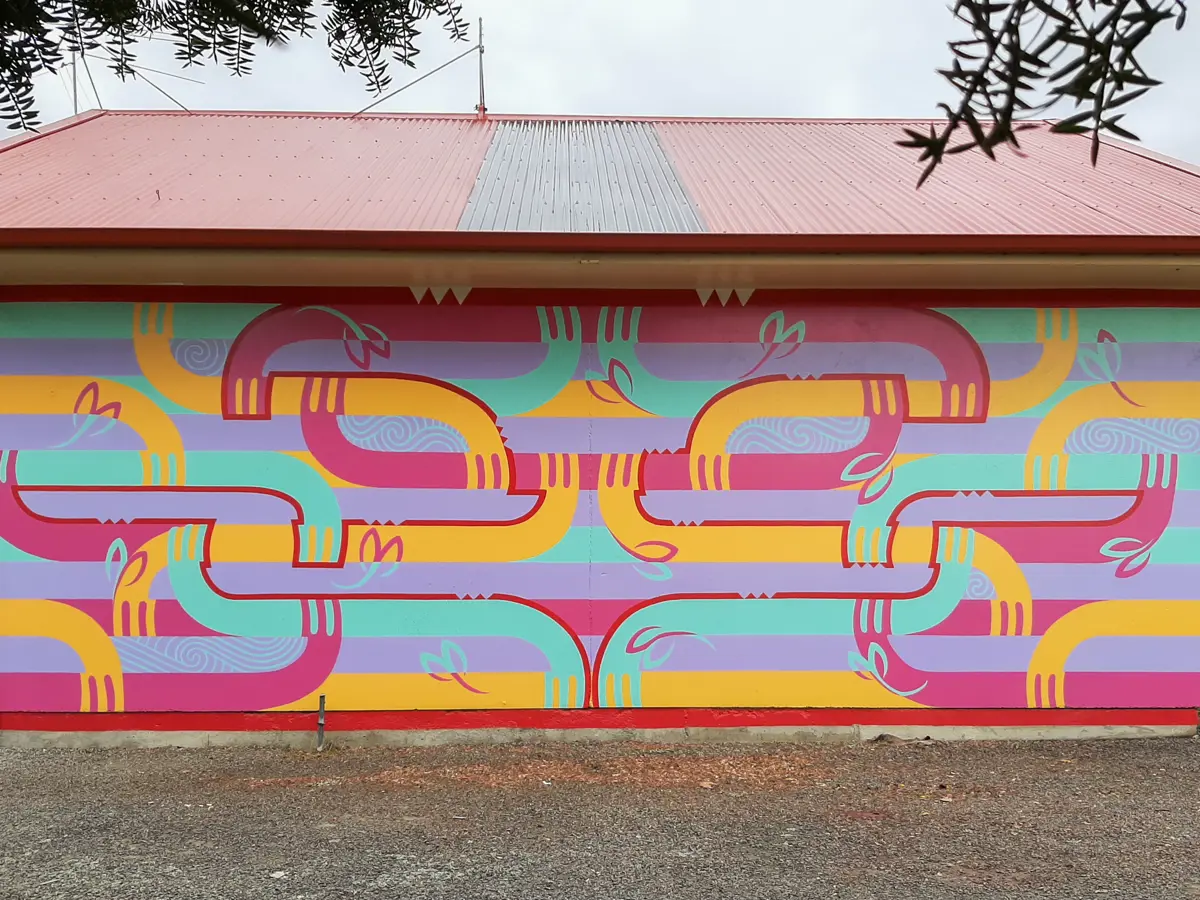 The hands in this work represent the whakataukī and the spirit of kotahitanga (coming together as one) that built Waikanae from its first foundations. The mural is an acknowledgment of Te Kākākura and Unaiki who dedicated their lives to building a community that held connection at the centre of everything — to whenua (land), home and each other. Bringing people together was their aspiration and their legacy.