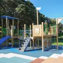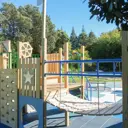 Marine Gardens, located at Raumati Beach on the Kāpiti Coast, is a fantastic destination playground that offers a variety of fun activities for families and visitors of all ages. Set among beautiful trees and flower beds, the playground features an exciting range of equipment, including a flying fox, splashpad, and a sandpit with a digger. The playground is designed with both sunny and shaded areas, providing spaces for play and relaxation. For an extra bit of adventure, there's a miniature train running along the edge of the park, offering rides with tunnels and a scenic track. With easy access to the beach, picnic tables, and a variety of facilities, Marine Gardens is an ideal spot for a fun, active day out.