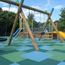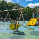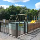 The fully fenced playground provides a safe and welcoming environment for children to play while adults relax nearby. With slides, swings, balance beams, climbing frames, and seating, there’s plenty to keep kids engaged.
