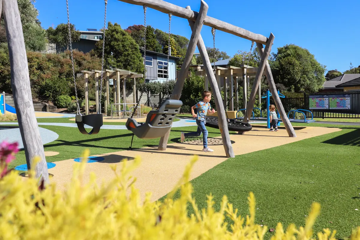 Lorna Irene Drive Reserve in Raumati South is a fully accessible playground that offers a fun, inclusive play experience for children of all abilities. Awarded Playground of the Year at the New Zealand Parks Awards 2023, this playground features a range of accessible equipment designed to engage toddlers and young children. Whether it’s sensory play, musical interaction, or wheelchair-friendly features, this space has something for everyone.