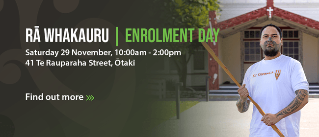Kia rangatira te tū! Learning with us is a journey back to yourself. Join us at Rā Whakauru — Enrolment Day at Te Wānanga o Raukawa and take that first step toward growing your reo, your knowledge, and your connection to te ao Māori. Get on-the-spot enrolment help, scholarship and fees advice, and enjoy guided campus tours of our whare, noho, and learning spaces. Explore our whare pukapuka, meet our pūkenga from Te Whare Kōkiri — including Mātauranga Māori, Whare Pora, Whakairo, and Whakahaere. Kai, manaaki, tamariki activities, and the Hokomai shop will be open too!