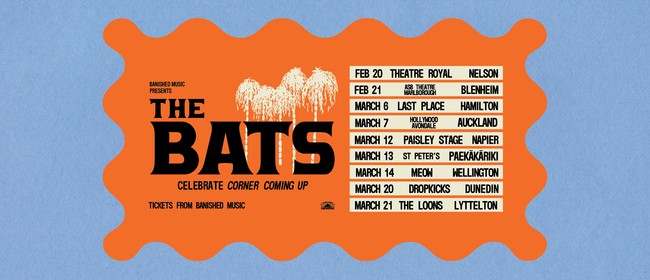 Fresh from a triumphant, room-rammed set at The Other’s Way festival, Aotearoa indie legends The Bats are heading out on the road in 2026 to finally deliver the live accompaniment to their much-loved 2025 album Corner Coming Up. Recorded with Tex Houston at Chicks Studio in Port Chalmers, their 11th album Corner Coming Up charted at #1 on the IMNZ chart & #2 on the Aotearoa Music Charts and shows The Bats at their shimmering, melodic best; full of bright guitar lines, warm harmonies, and the band’s unmistakable Bats-ey sweet mystique. A beloved part of the Flying Nun story, the band have maintained the same lineup since Robert, Kaye and Paul shoplifted Malcolm from The Bilders, who played their first gig on New Year’s Eve 1982 in Dunedin. So behold, nine shows across February and March in The Bats' most extensive NZ tour in over 20 years, sharing songs from the record alongside treasured picks from their four-decades-deep knockout catalogue. Adding to the intrigue, the Auckland headline date at Hollywood Avondale is part of Banished Music & Strange News' newly minted Strange Universe show series. ABOUT THE BATS Formed in Christchurch in 1982, The Bats - Robert Scott, Kaye Woodward, Paul Kean, and Malcolm Grant - have quietly and loudly endured as one of New Zealand’s most beloved pop bands. An integral cog in the Flying Nun scene alongside friends/ contemporaries The Clean and The Chills, The Bats quickly developed a sound all their own: chiming guitars, melodic bass lines, and songs that are unassuming while being instantly memorable. With a lineup that has stayed the same for over 40 years, their chemistry is unmistakable. Albums like Daddy’s Highway, Fear of God, Silverbeet, Free All The Monsters, and so many mor,e The Bats have cemented their legendary status at home and abroad, earning them a devoted generation-spanning following.