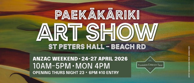 Welcome to the Paekākāriki Community Trust's 2026 annual Art Show. We showcase and sell artworks (paintings, ceramics, etc.) by local and regional artists for reasonable prices on a cash-and-carry basis. This year's featured artist is Storm Davenport, who will be selling a mix of paintings and ceramics. Opening night is Thursday, 23rd, from 6 - 9 pm. We will provide wine, water and nibbles. Entry cost is $10. Entry to the Show on all other days is $2. Free for children. We are a registered charity and all proceeds are used for the maintenance of St Peters Hall, Paekākāriki.