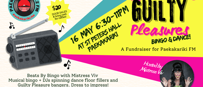 Paekākāriki FM presents: Guilty Pleasures Bingo & Dance! Get your crew together and come support your community radio station, Paekākāriki FM, for an epic night of music, laughs, and dancefloor guilty pleasures! The night kicks off with Musical Bingo hosted by the sexy Westy Bingo legend, Mistress Viv. Expect throwback jams, massive sing-alongs, dance-offs, and plenty of chances to win awesome prizes. After bingo, the party keeps going with DJs spinning all the songs you secretly love — the kind that get everyone on the dancefloor. -Dress to impress in your best Guilty Pleasures outfit! - R18 show! -Entry: $20 on the door -Bring some cash for the raffles — there are great prizes up for grabs! All funds raised will go towards new equipment for your community radio station, Paekākāriki FM. Schedule: -Warm-up DJs: 6:30/7:00pm - get in early to nab a table! - Bingo Show: 7:30pm – 9:00pm - Guilty Pleasures Dance Party: 9:00pm – 11:00pm Come along, sing your heart out, have a boogie, and support local community radio.