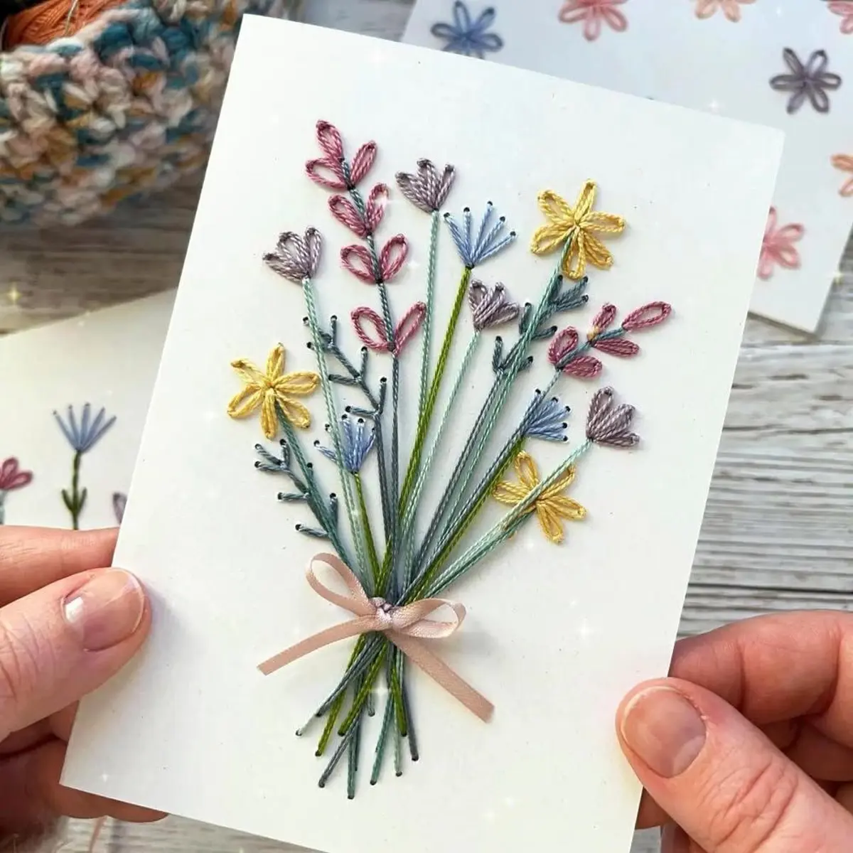Creating designs by stitching through paper with a needle and thread, similar to traditional fabric embroidery. It's a fun and creative way to personalize cards, decorations, or art pieces. Materials are provided.