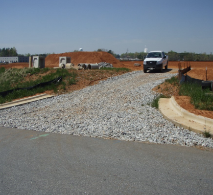 - During construction, a temporary stabilised vehicle entry/exit pad is often installed to control sediment and prevent mud tracking onto roads.