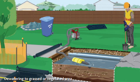 - When filtration to land is not suitable (e.g. limited space, high contamination), pump water into a portable container like an IBC (Intermediate Bulk Container) or use a vacuum truck.