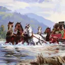 A mail coach crossing the river. Oil painting by Ernest Papps. Courtesy of the artist and Carol Doreen.